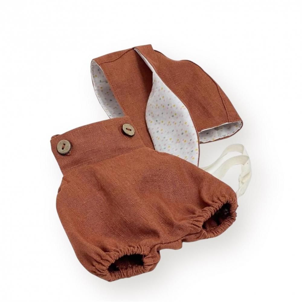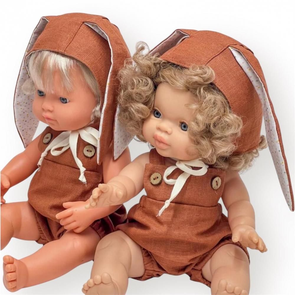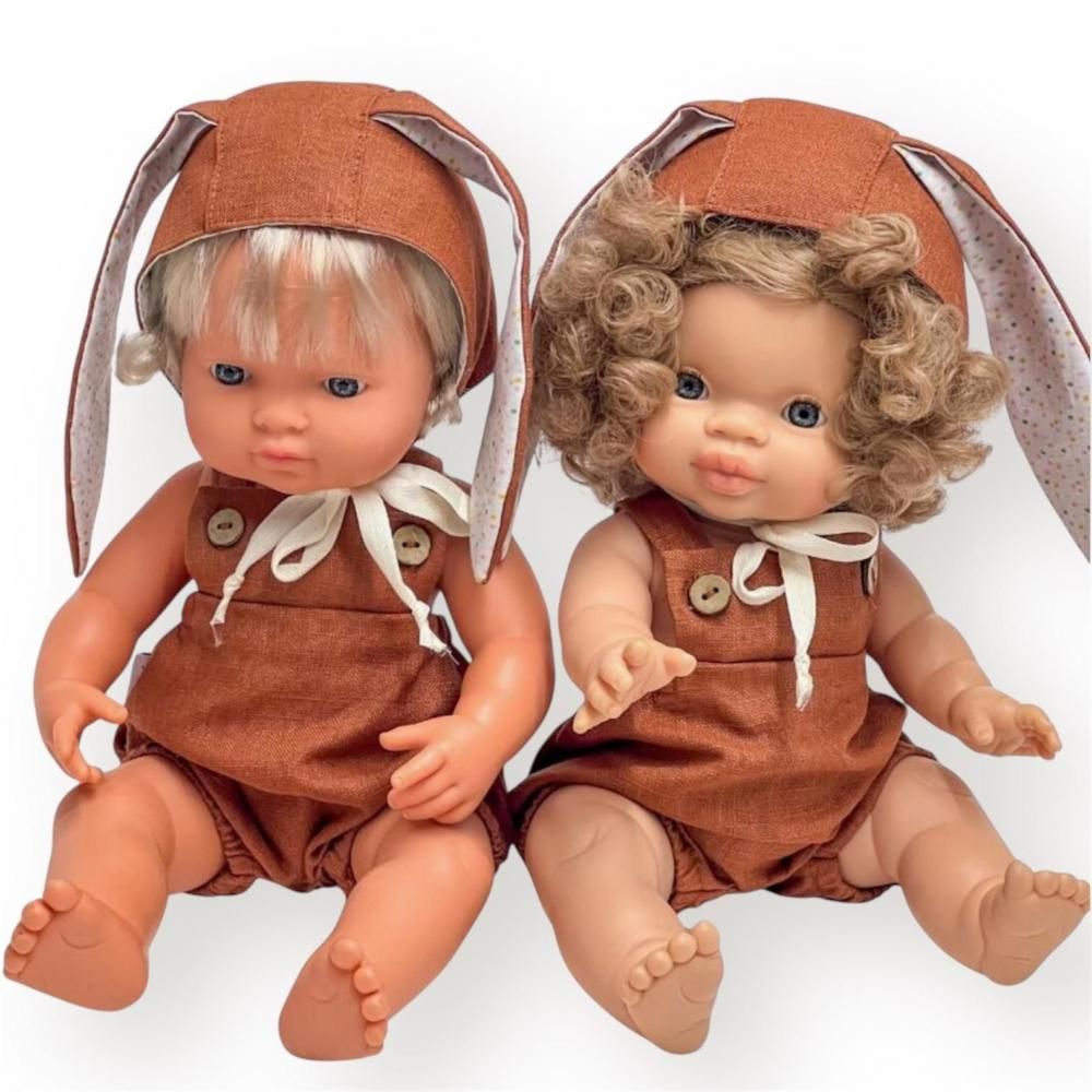綺麗なブラウン色のリネン地とドット柄の組み合わせが男の子&女の子ドール、どちらにもとっても可愛いセットです。